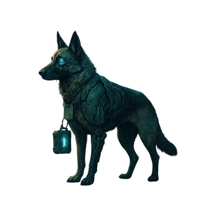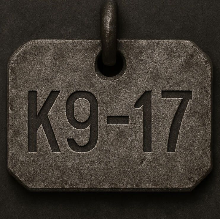 Forged in steel. Etched with purpose. This worn identifier isn’t just a tag — it’s a symbol of loyalty, resilience, and sacrifice. Worn by Ace, the cybernetic German Shepherd codenamed K9-17..